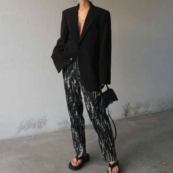 Черные джинсы с высокой талией, прямые брюки, женские джинсы с эффектом потертости, свободные уличные брюки в стиле бойфренда в полоску с ка...