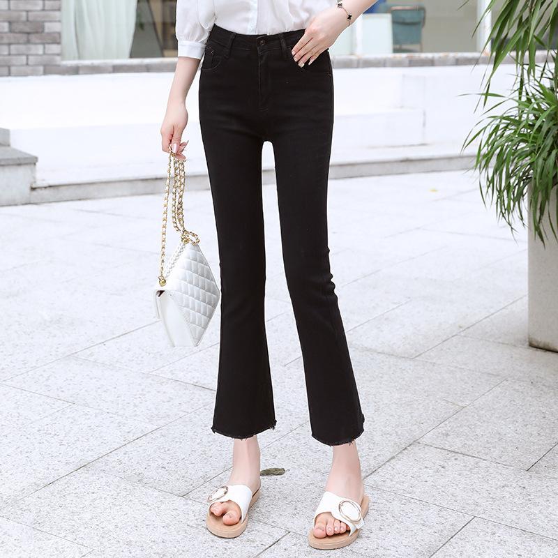 Черные джинсы с высокой талией Raw Edge Micro Flare, женские осенние и зимние новые тонкие эластичные девятиминутные брюки 32 чёрный