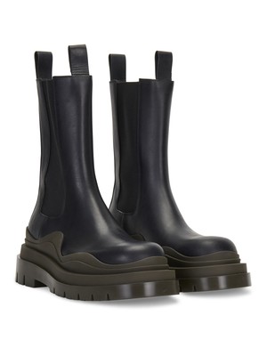 Черные женские кожаные ботинки на танкетке BOTTEGA VENETA 1-1/2 дюйма на платформе с шинами, Черный, 630297VBS50