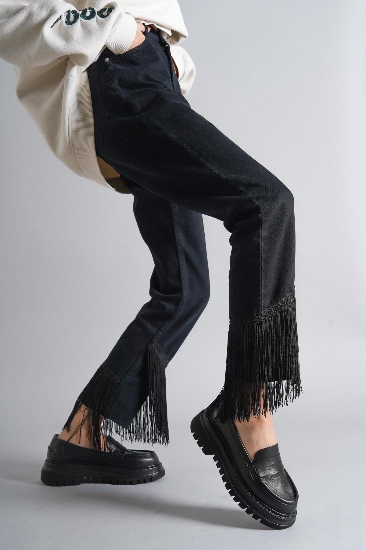 Черные женские повседневные кожаные лоферы из натуральной кожи на толстой подошве 36