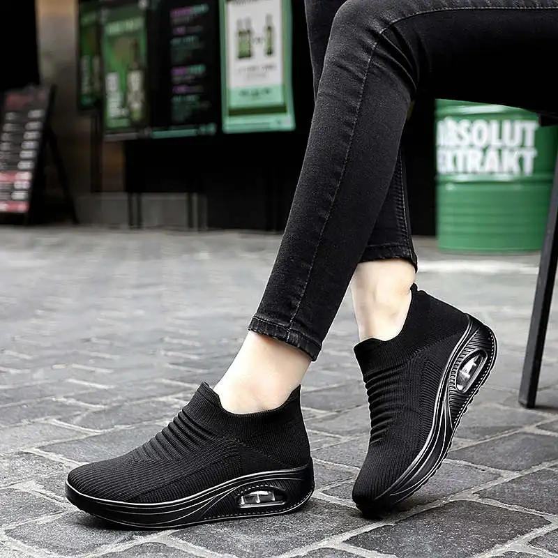 Черные кроссовки для бега, Размер 8,5, кроссовки для спорта, женские холщовые кроссовки на толстой подошве, спортивная обувь для спорта, Женск...