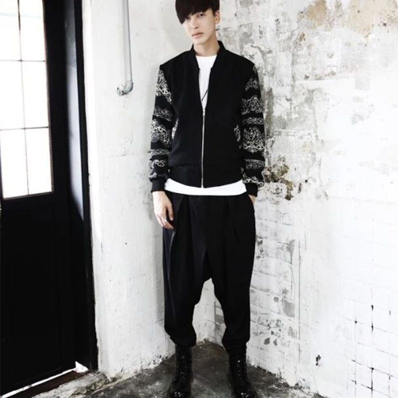 Черные модные трендовые мужские повседневные брюки с большим шаговым швом, мужские брюки с низким шаговым швом в Корейском стиле, мужские брюки большого размера с подвеской