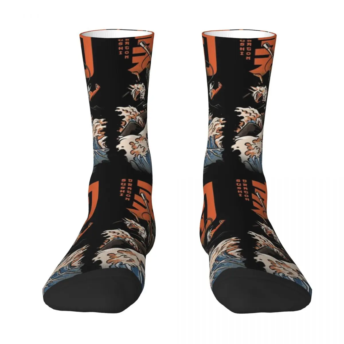Черные носки с суши-драконом, крутые японские модные носки на Хэллоуин для мужчин и женщин