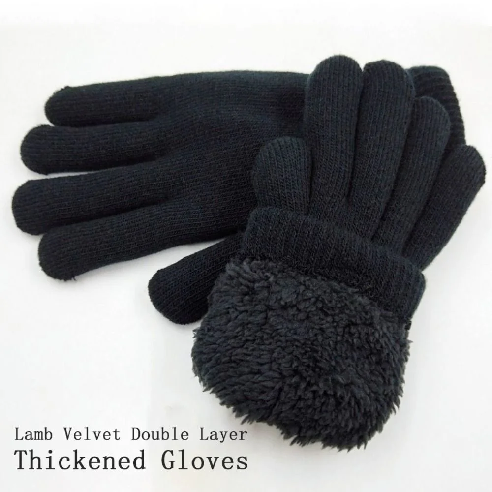 Черные плотные перчатки, модные плотные зимние перчатки из ягненка и бархата, мягкие двухслойные теплые варежки для мальчиков и девочек