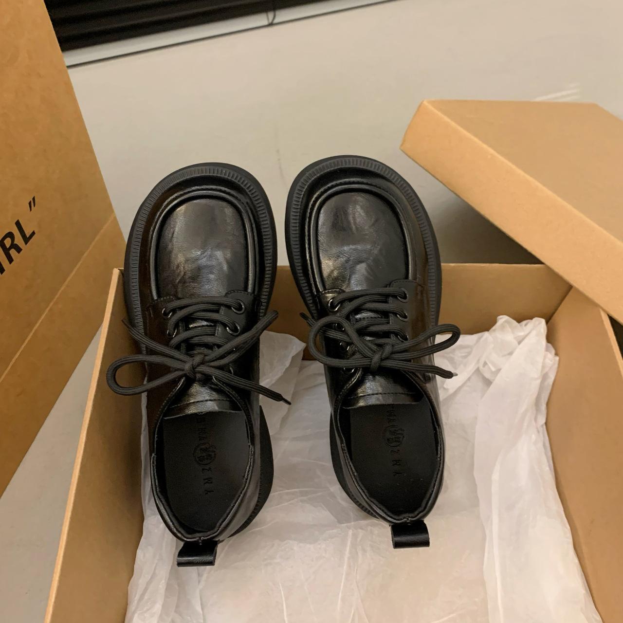 Черные туфли на платформе из кожи женские, осень 2024 года, новые универсальные лоферы в британском стиле, ретро-туфли на шнуровке в японском стиле 35 чёрный