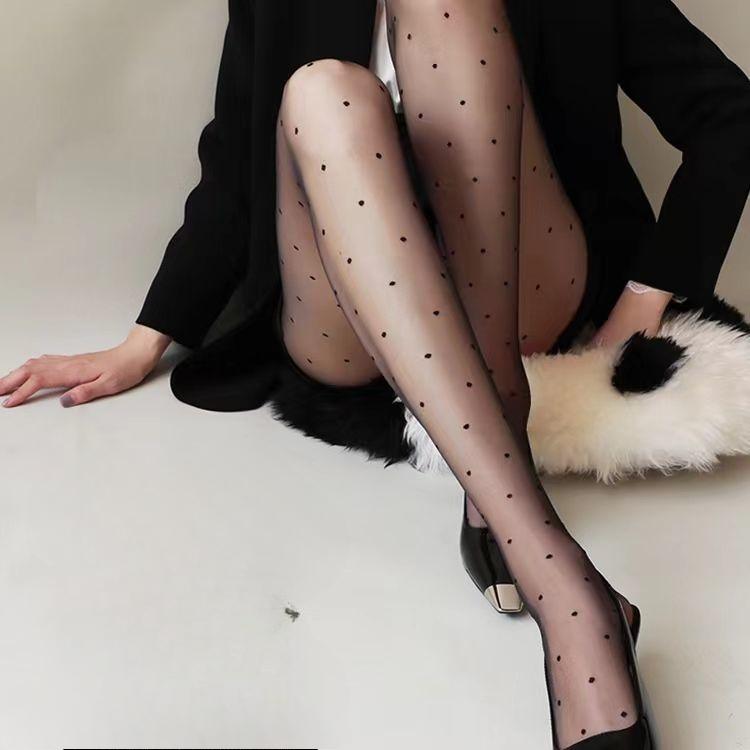 Черные чулки Сексуальные чулки с сердечками Mi-style Колготки в горошек Летние чулки с эффектом «нюд» Черный шелк Jk Ультратонкий стиль One Size