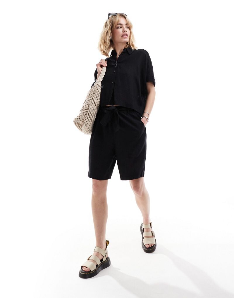 Черные шорты с завышенной талией из смесового льна Selected Gulia