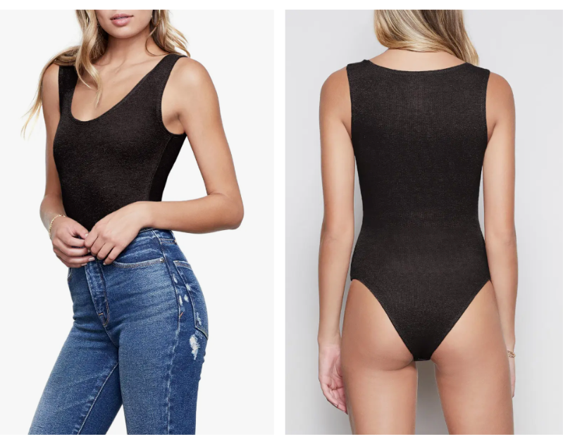 Черный боди без рукавов GOOD AMERICAN The Feel Good 2 = Star Nipple Pasties