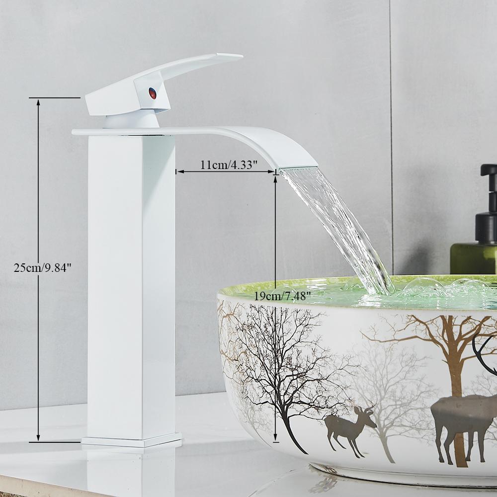 Черный водопадный кран для раковины, высокий смеситель для ванной комнаты, широкий излив, кран для раковины, кран для горячей и холодной воды
