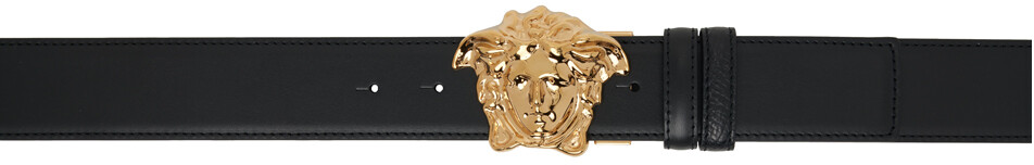 Черный двусторонний ремень La Medusa Черное золото Versace