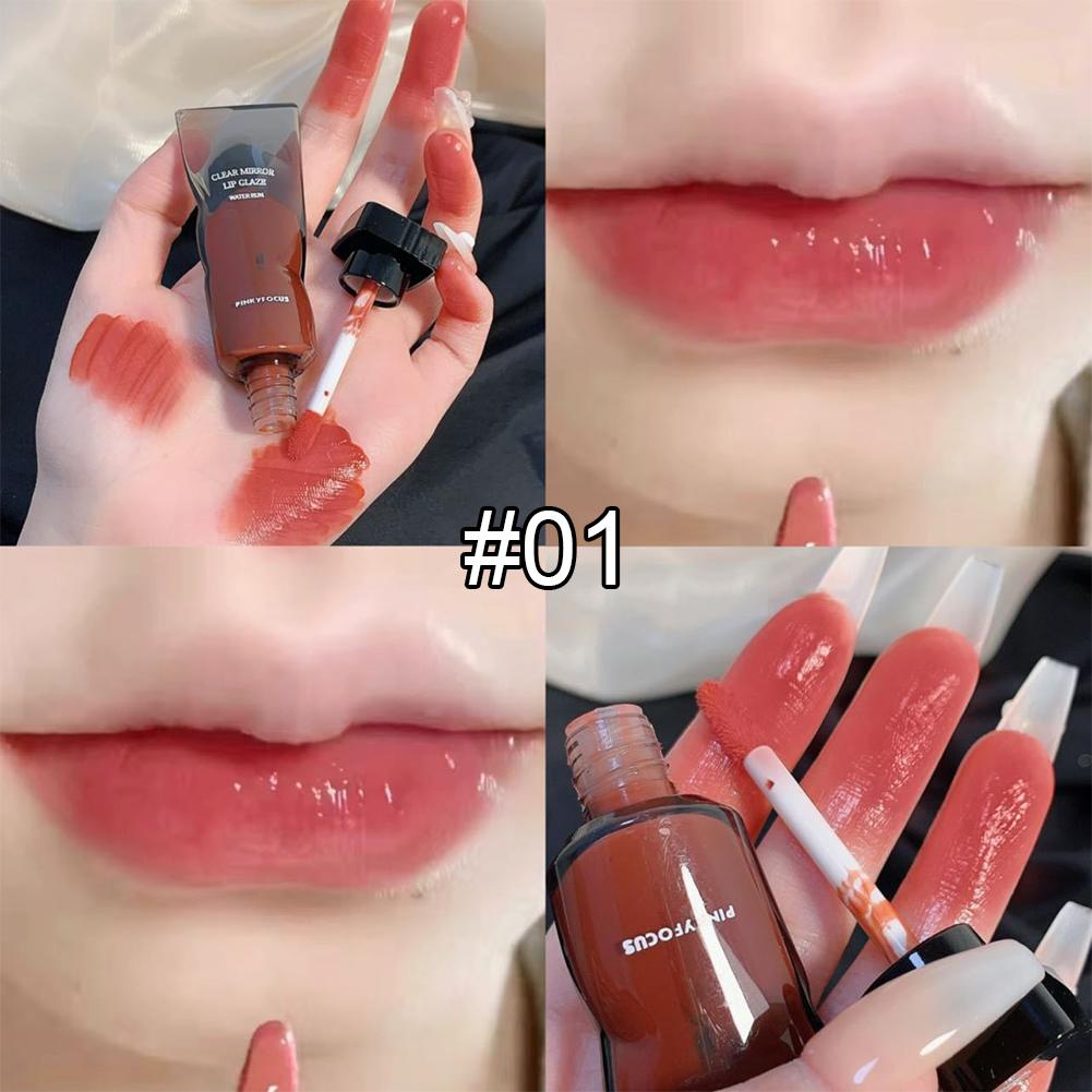 Черный зеркальный водный блеск для губ Глазурь для губ Прозрачное стекло Масло для губ Водонепроницаемая жидкая помада телесного коричневого цвета Прозрачный оттенок макияжа 01
