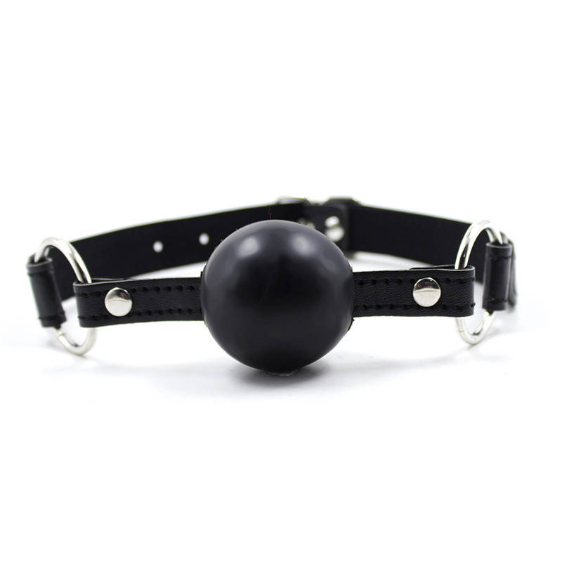 Черный кляп Fantasy Ball с кожаным ремешком шарик силикон
