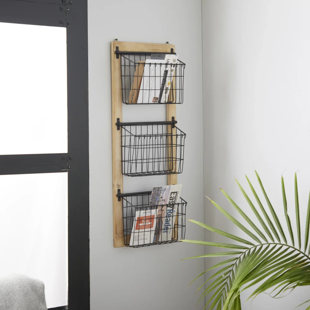 Черный/коричневый фермерский 3-уровневый подвесной металлический держатель для магазинов, 14 дюймов Ш x 34 дюйма в