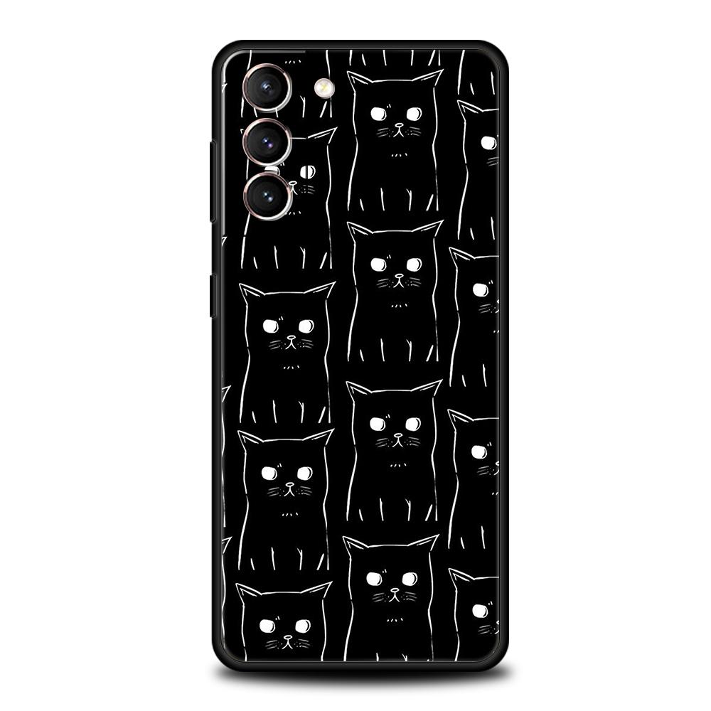 Черный кот мультфильм милый чехол для телефона Samsung Galaxy S24 S23 Ultra S22 S21 S20 FE 5G S10 S10E S9 Plus S8 силиконовый черный чехол Samsung S21 Plus