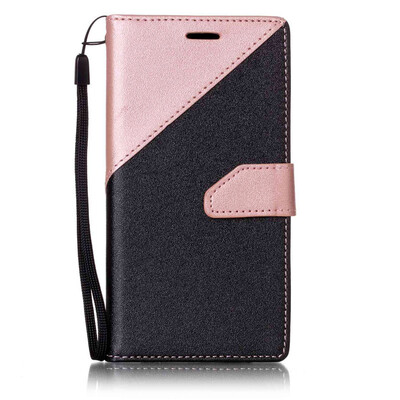 Черный + розовое золото Дизайн PU кожаный бумажник чехол Классический откидная крышка с подставкой Функция и слот кредитной карты