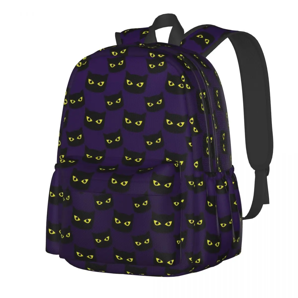 Черный и фиолетовый рюкзак с рисунком кота для Хэллоуина для женщин и мужчин, полиэстер, уличные стильные рюкзаки, прочные милые школьные су...