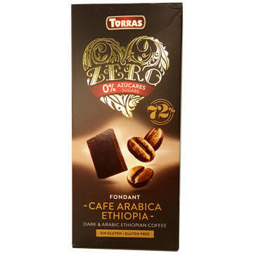 Черный шоколад без сахара Torras ZERO cafe arabika с кофе арабика эфиопия 100г