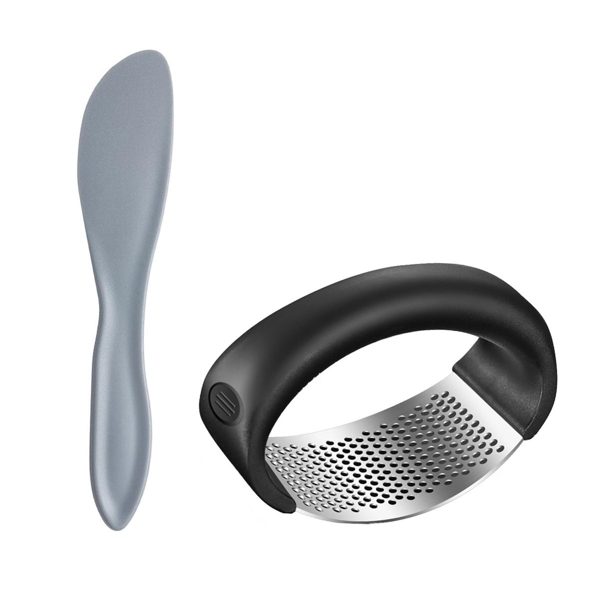 Чеснокодавка Rocker с набором лопаток, Портативная чеснокодавка из нержавеющей стали, Ручная чесночница-измельчитель, Кухонные гаджеты