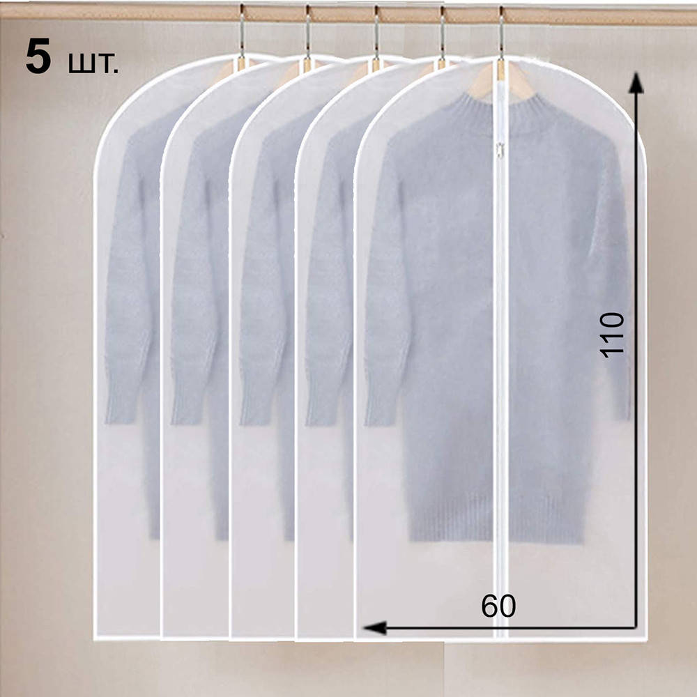 Чехлы для Хранения Одежды - 60х110 см - PEVA - Комплект 5 шт ОРИГИНАЛ ❤️, Белый