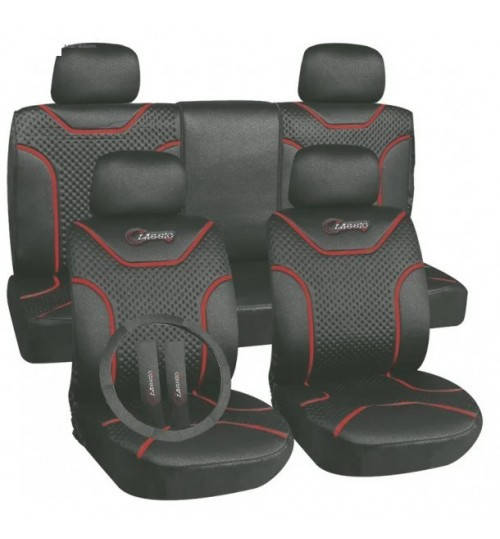 Комплект : чехлы передние и задний диван + 5 подголовников, чехол на руль и 2 защитных чехла на ремни безопасности