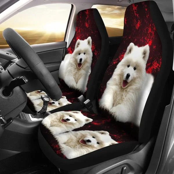 Чехлы на сиденья автомобиля Samoyed с принтом собаки 2 шт.
