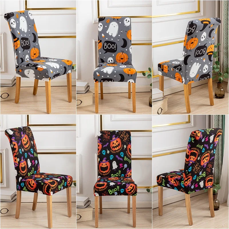 Чехлы на стулья с принтом на Хэллоуин, Мультяшные эластичные чехлы из спандекса, Нескользящие, для кухни, гостиной