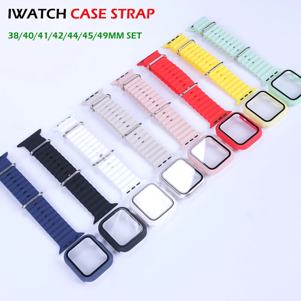 Чехлы + ремешок для Apple Watch Band Ultra 49 мм 38 мм 40 мм 41 мм 42 мм 44/45 мм Ocean силиконовый браслет защитный чехол бампер 49 мм