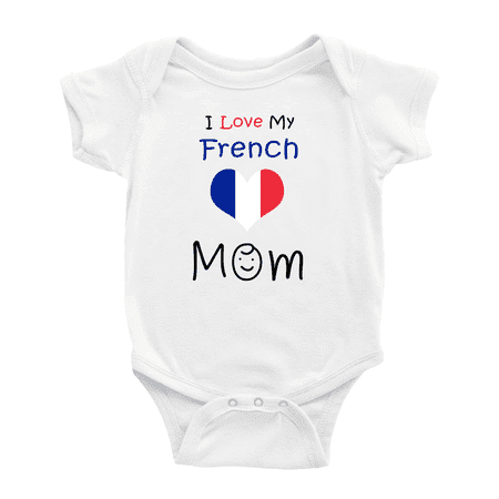 I Love My French Mom Baby Bodysuit Newborn Clothes Outfits (White 18-24 Months)