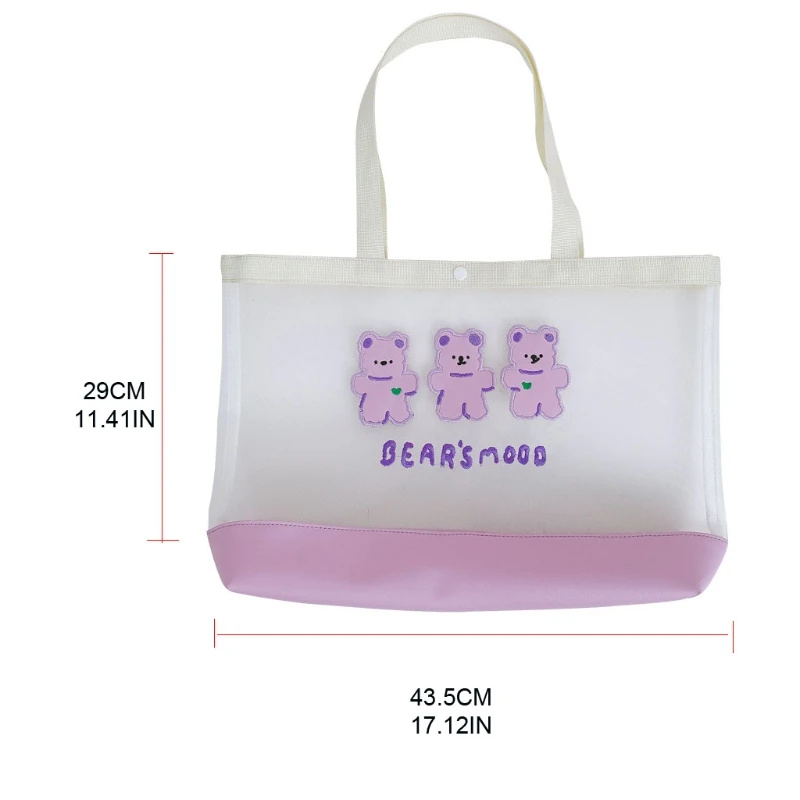 50LD Women Cute Mesh Bear Handbag Lady Top Handle Casual Tote Shopping Bags Purse