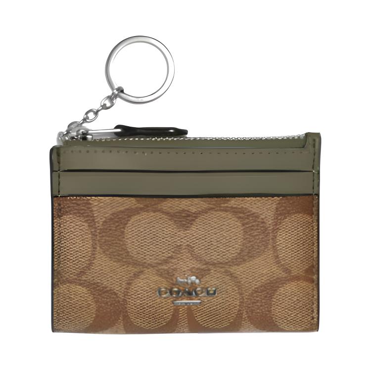 Миниатюрный кожаный кошелек для карт с нашивками из кожи и ПВХ, унисекс, оливково-зеленый и коричневый, с монограммой COACH