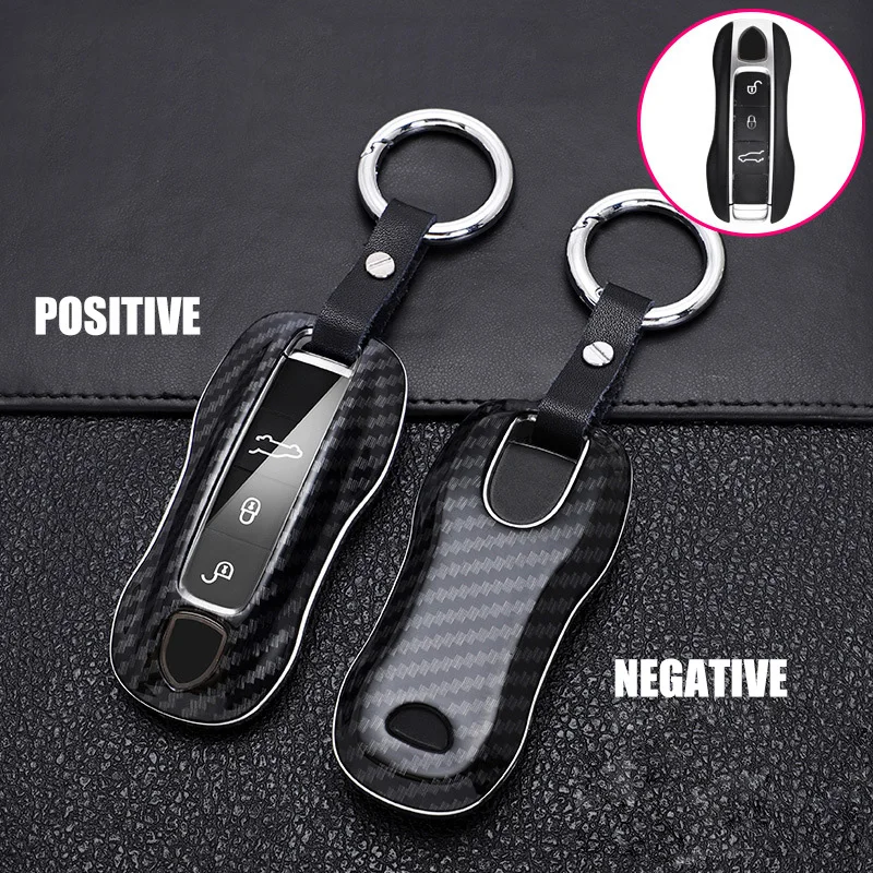 Чехол для автомобильного ключа дистанционного управления из АБС-пластика для Porsche Macan, чехол из углеродного волокна в полоску, износостойки...