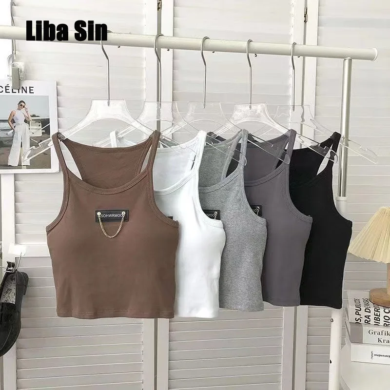 Pearl Diary Women Summer Design Printed Letters Knitted Vest With Bra Pad Sexy Slim Sling Top Y2K Chain Vest Top