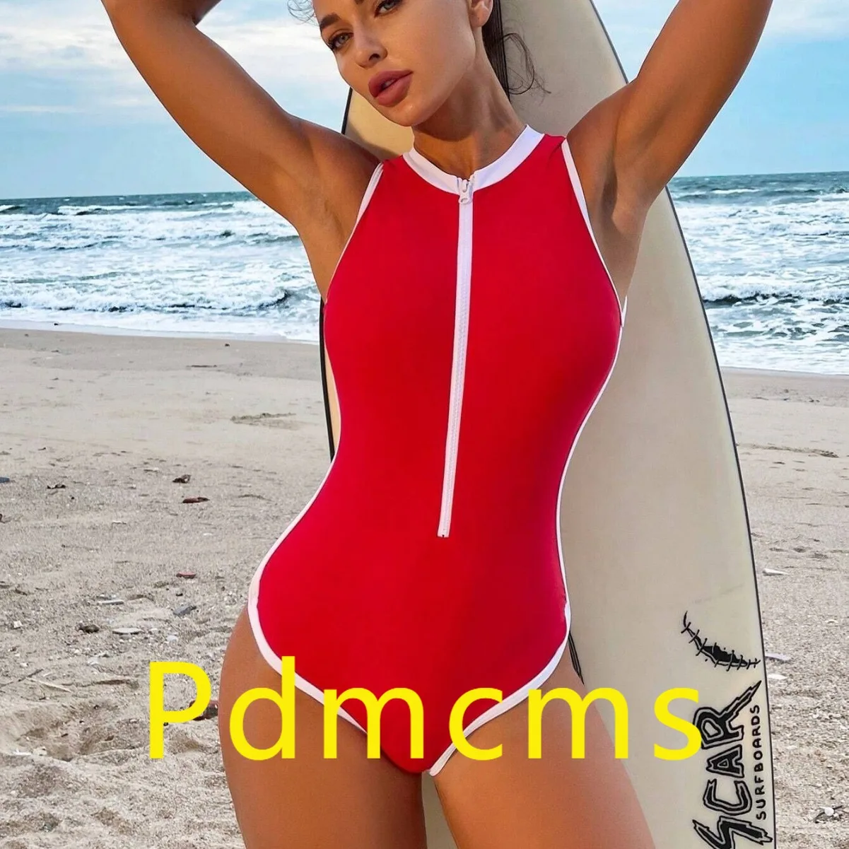 Новинка 2025 года, сексуальный красный цельный цельный жилет без рукавов на молнии в европейском и американском стиле, костюм для серфинга, солнцезащитный женский купальник