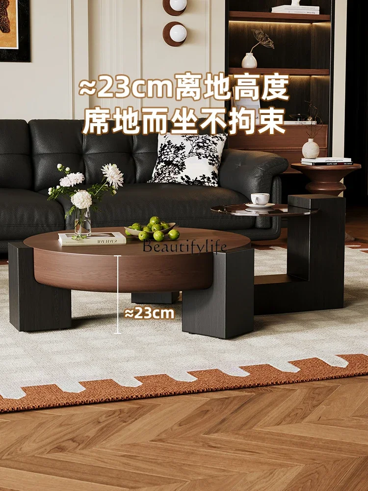 yj5 French Retro Coffee Table Tempered Glass Vintage Style Home Living Room Simple Round Tea Table