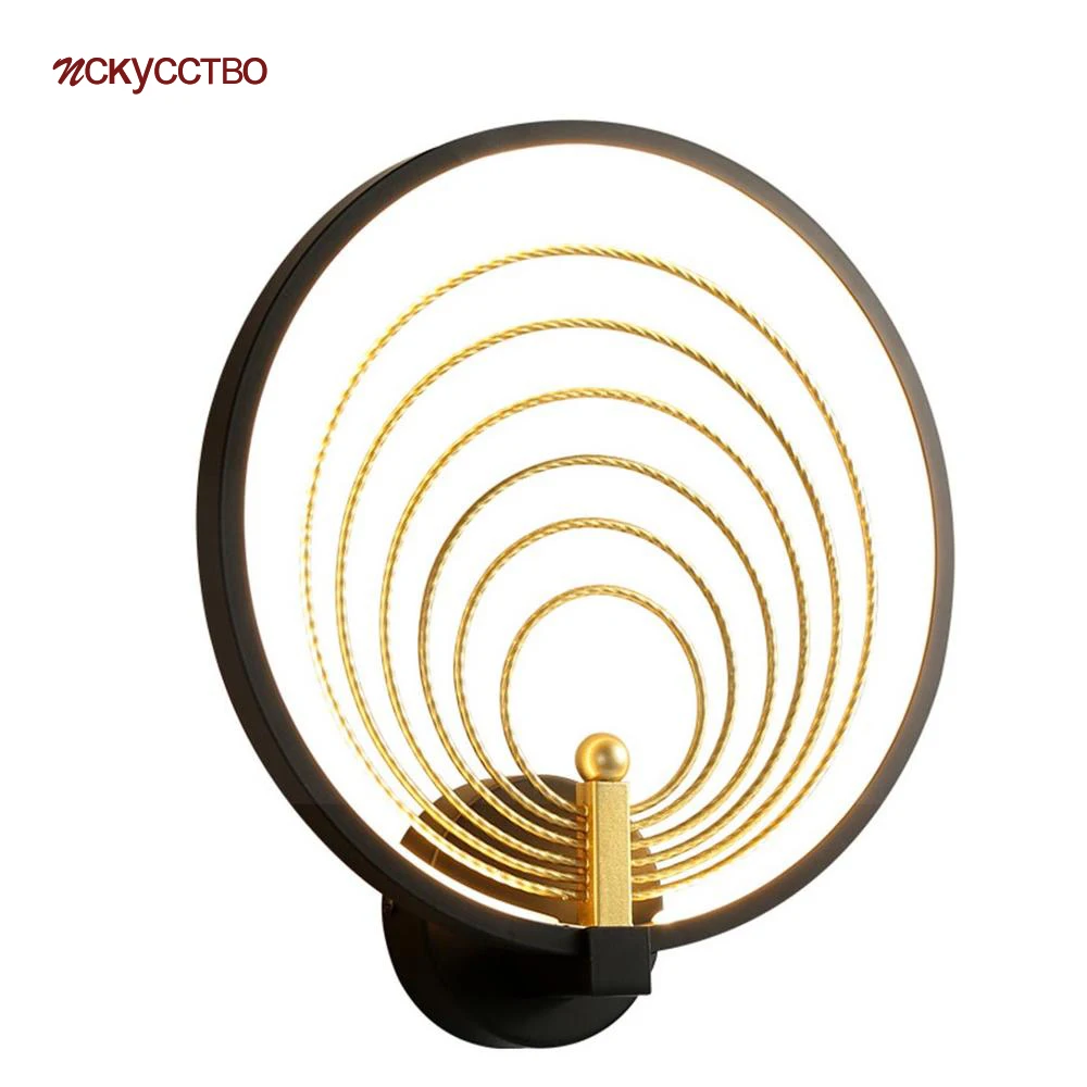 Nordic Multiple Golden Rings Round Led Remote Wall Lamp Minimalism Home Deco Living Room Bedroom Creative Bedside Light Fixture