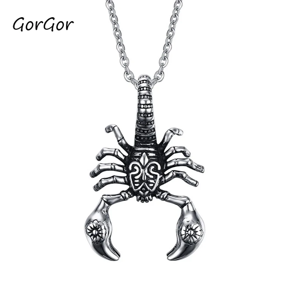 GorGor Новые поступления для мужчин в стиле хип-хоп ювелирные изделия для малышей с принтом «Скорпион» Длинная цепочка Цвет кулон ожерелье пан...