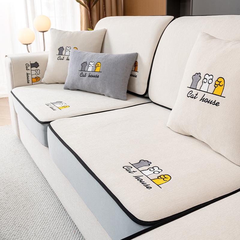 Чехол для дивана из шенилла, универсальная подушка для дивана на все сезоны, новая нескользящая подушка из цельного дерева, чехол для спинки сиденья Pillow case белый