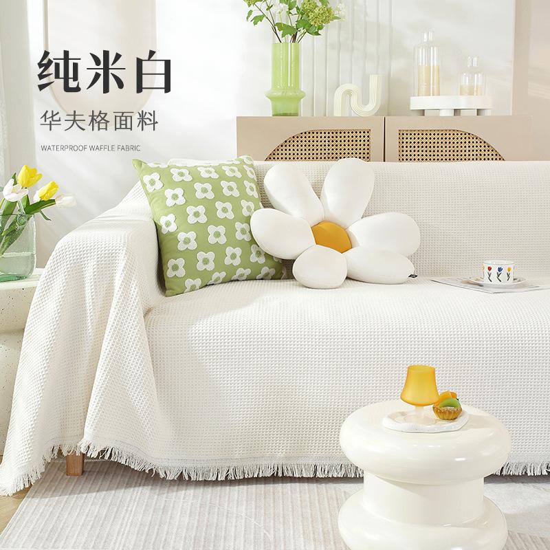 Чехол для дивана с вафельной решеткой, антикошачьи лапки, полотенце для дивана, одеяло с маленькими свежими кисточками, универсальный для всех сезонов, декор для гостиной 180x130cm1pcs грязно-белый