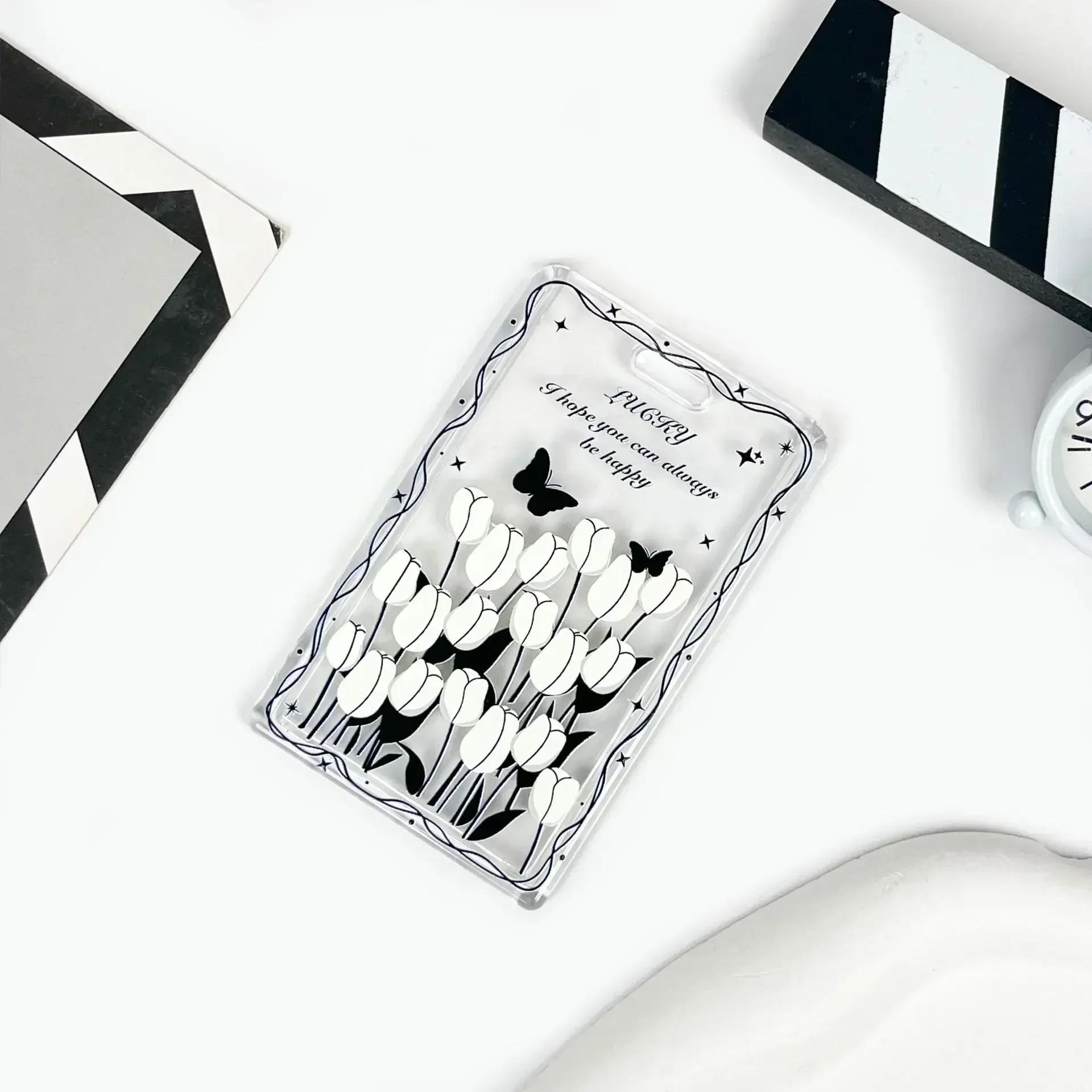 Чехол для карт с черным цветком, прозрачный держатель для студенческой карты, чехол для карты контроля доступа, чехол для карты на пружине, держатель для удостоверения личности