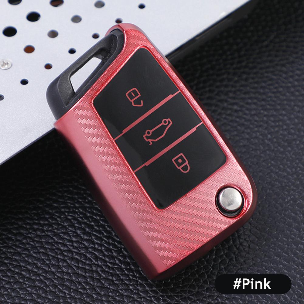 Чехол для ключей из ТПУ из углеродного волокна для VW Volkswagen Golf 7 MK7 Tiguan MK2 для SEAT Ateca Leon FR 2 Ibiza для Skoda Octavia розовый