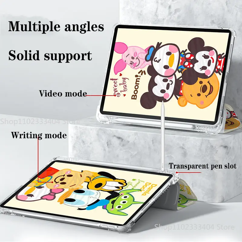 Чехол для планшета Disney, Микки, Минни, Винни, Mr.Q, для iPad Air 1, 2, 3, Mini, 4, 5, iPad Pro 2022, дюйма, защитный чехол с тройной подушкой безопасности