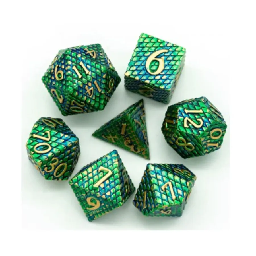 Полимерный набор из чешуи дракона — Веном с золотом (7), Dice Sets - Metal - Dragonstone, Dragon, Dragon Scale, Hidden Dragon
