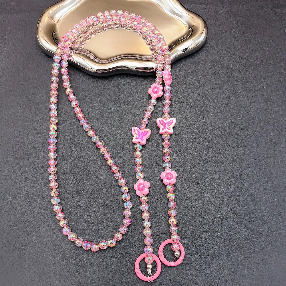 Чехол для телефона «Бабочка и цветок» с цепочкой для ношения через плечо розовый