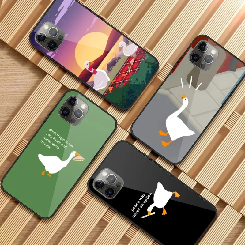 Чехол для телефона с изображением игры утиного гуся для IPhone 14, 13, 12, 11, XS, X, 8, 7, 6 Plus, Mini Pro Max, SE 2022, черный, из поликарбоната и ТПУ стекла