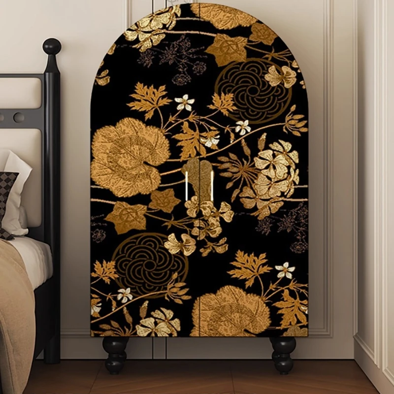 Chinese Retro Gold Flower Hallway Wardrobe Wood Clothing Storage Cabinets Shoe Cupboard Armario De Ropa Space Saving Furniture
