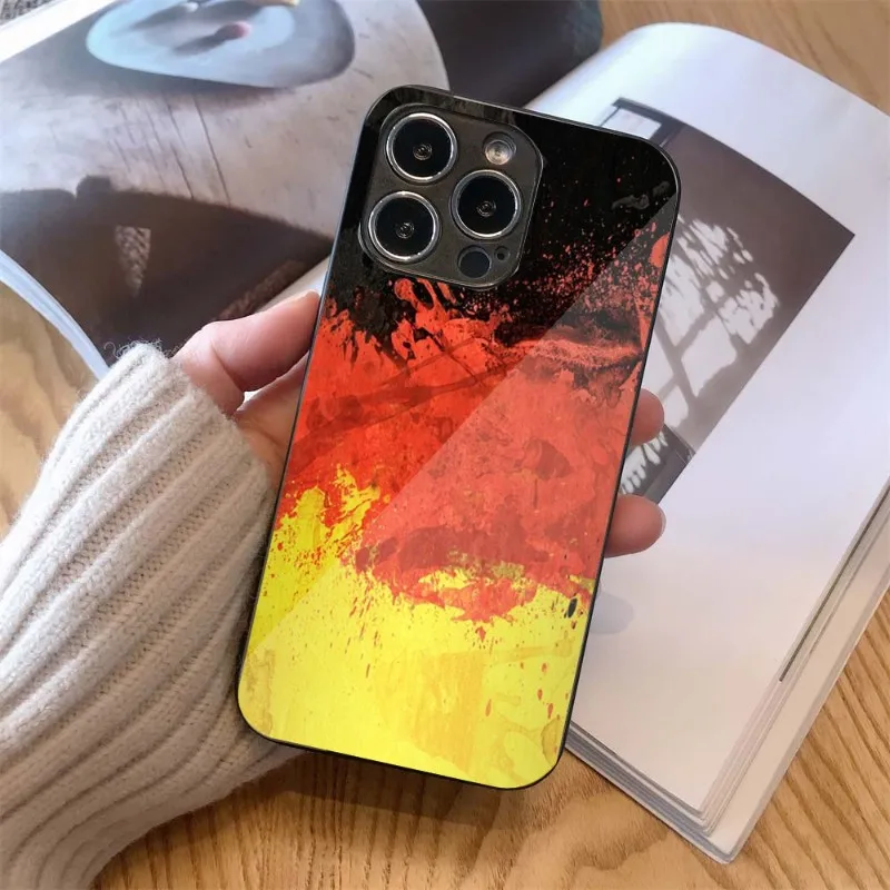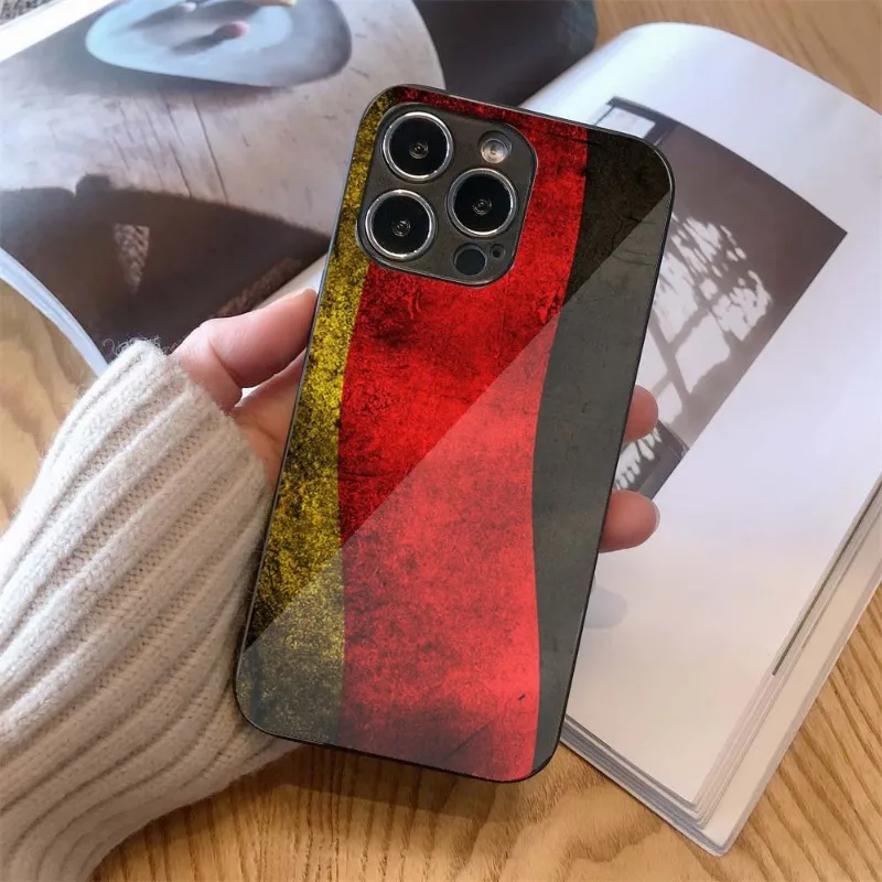 Чехол для телефона с немецким флагом для IPhone 14, 13, 12, 11, XS, X, 8, 7, 6 Plus, Mini Pro Max, SE 2022, черный стеклянный чехол для телефона из поликарбоната и ТПУ