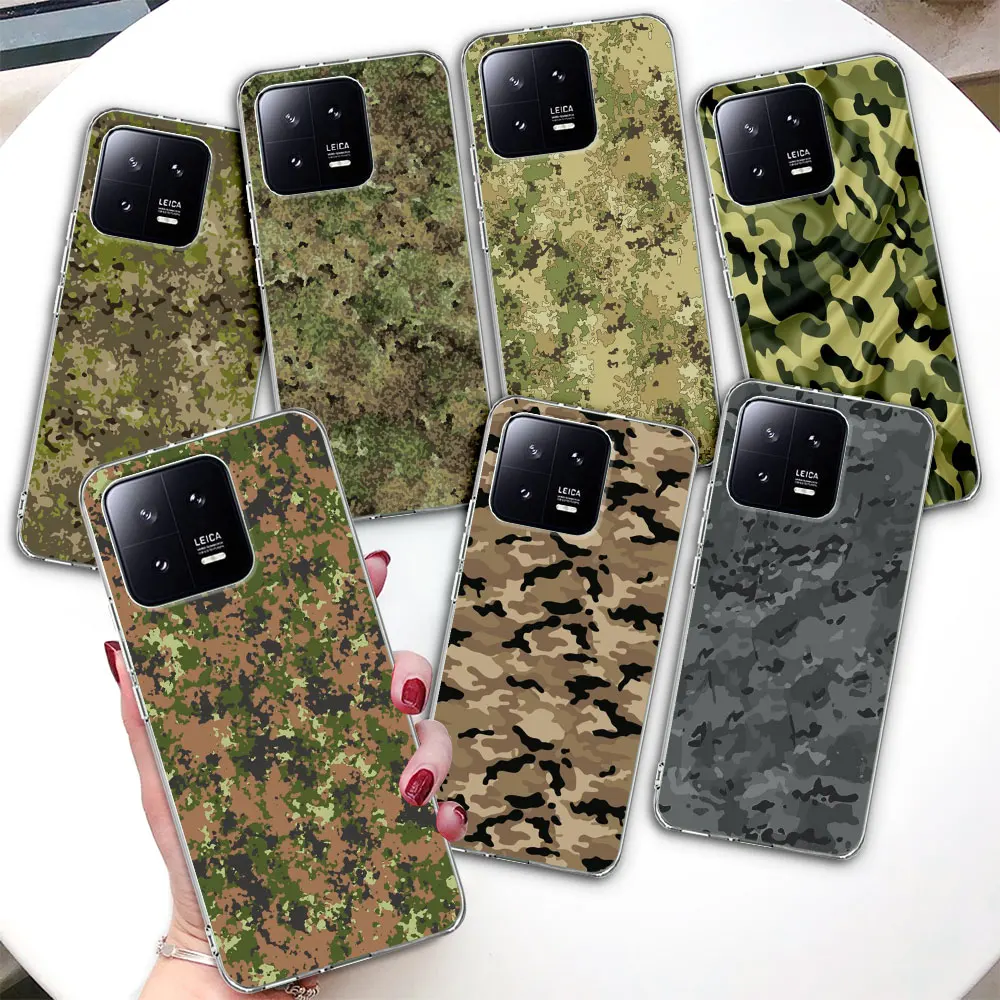 Чехол для телефона Xiaomi Mi 13 12T 11 Ultra 12 11T 10T 9T Pro Note 10 9 A2 CC9 8 Lite 11i, ТПУ прозрачный чехол, Армейский Камуфляж
