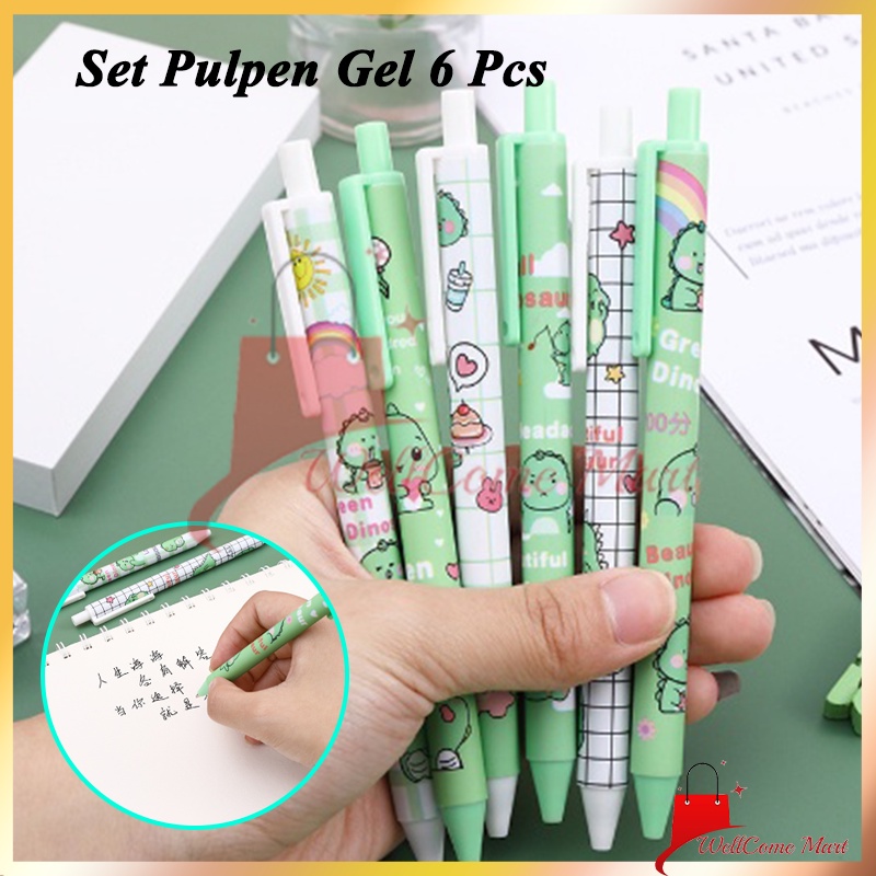 Ballpoint Mekanik Pulpen Set Isi 6 PCS / Set Pulpen Gel 6 Pcs / Pena Gel Mekanik Pola Lucu