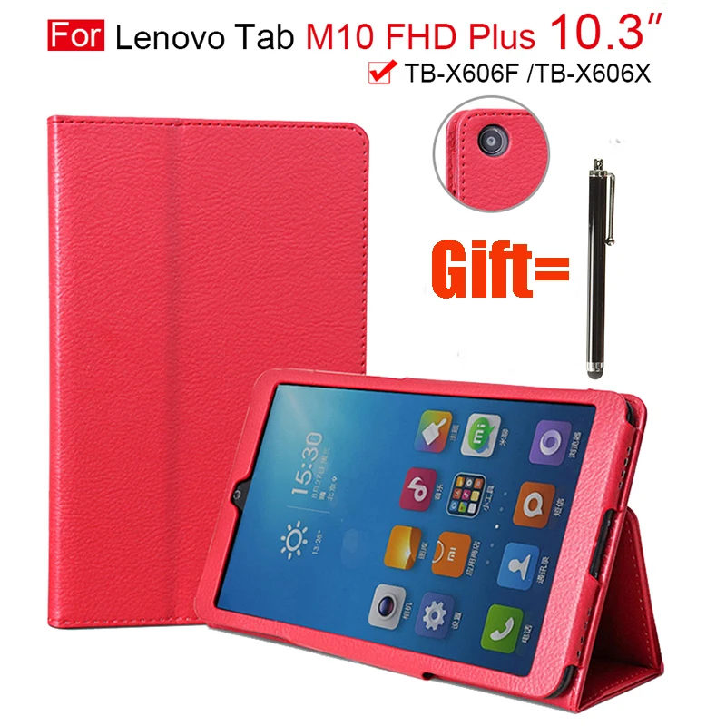 Чехол для Lenovo Tab M10 FHD Plus TB-X606F TB-X606X 10,3 "Smart Cover Funda, чехол-подставка из искусственной кожи личи для Lenovo M10 Plus + ручка
