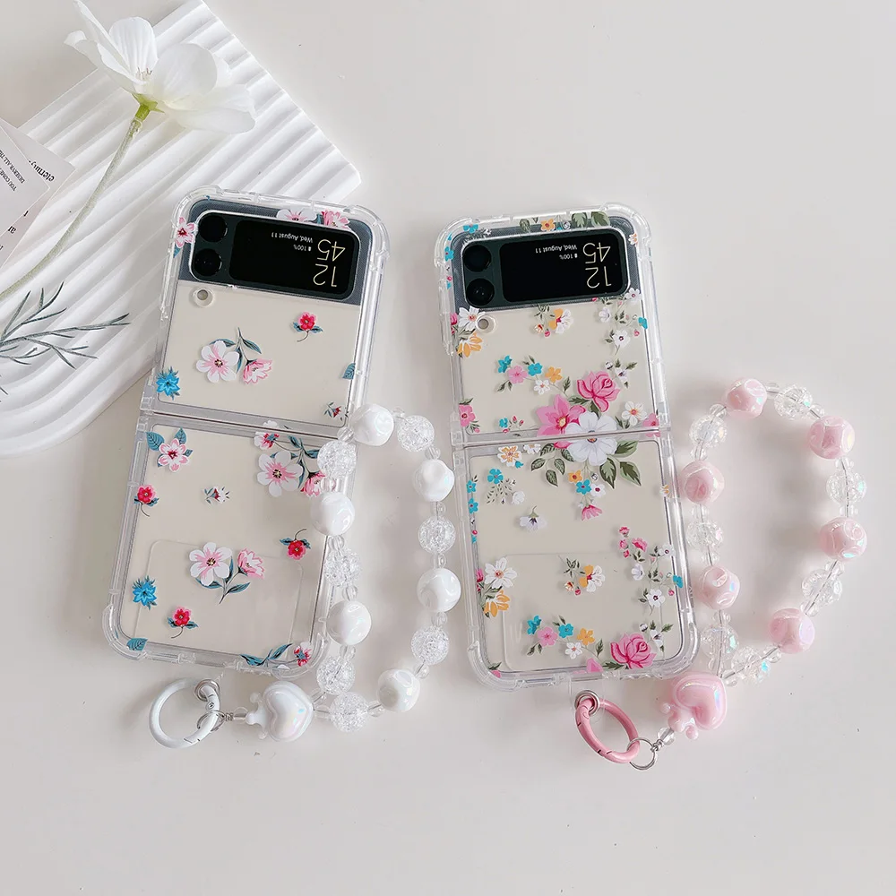 Чехол для Samsung Galaxy Z Flip 4 3, прозрачный силиконовый чехол с рисунком свежих цветов, складной противоударный чехол-накладка, аксессуары